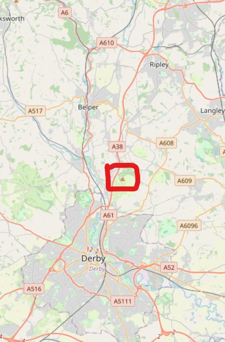 Drum Hill is just north of Derby, next to Breadsall Priority Moreland Golf Course.